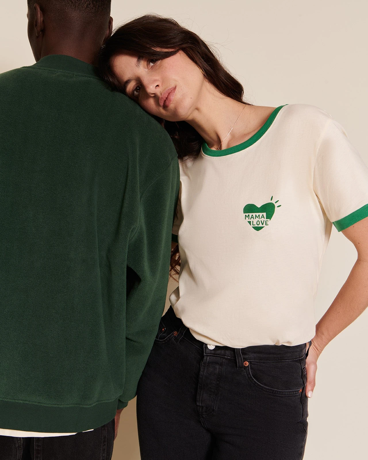 Notre t-shirt Jeanne est droit, ajusté mais non moulant. Si vous aimez le porter loose, prenez une taille au-dessus.