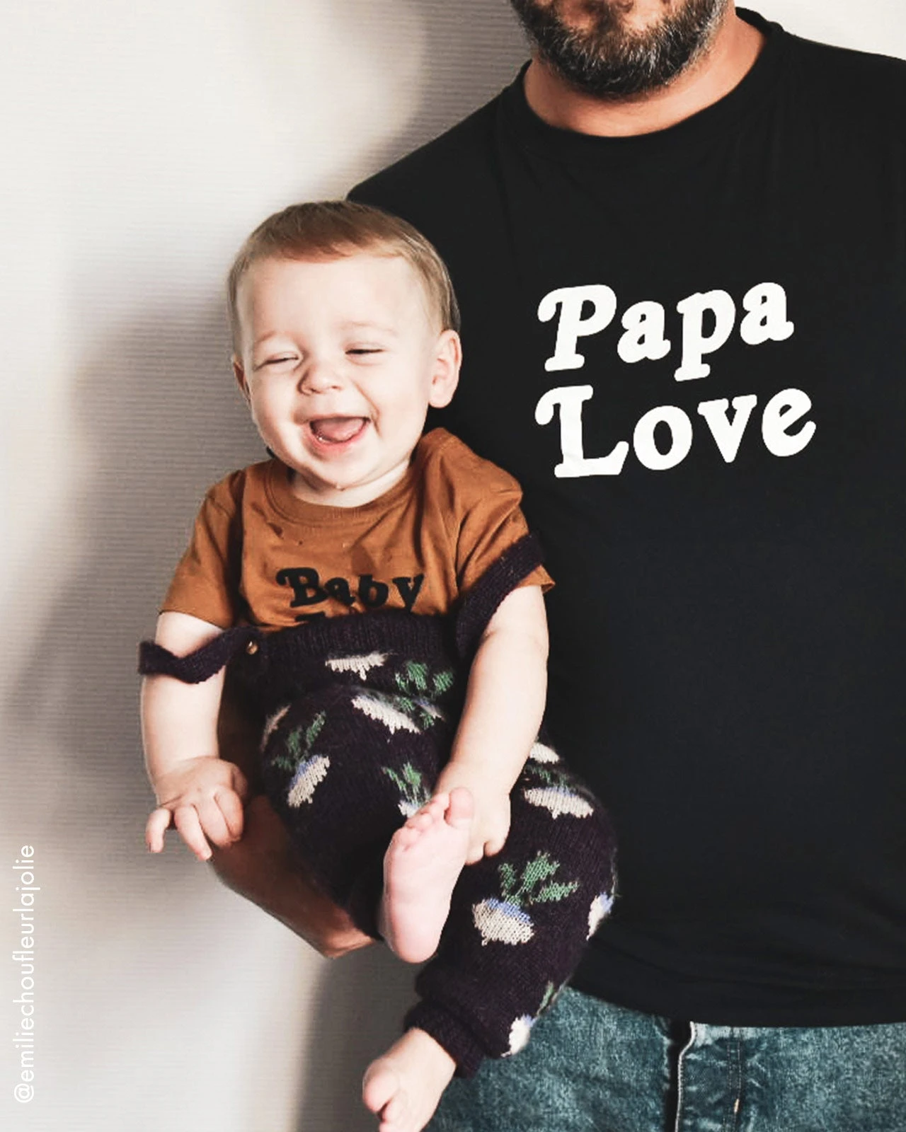 Papa Love : celui qui ne compte pas ses heures et ses nuits pour couver d’amour fou son mini. Parce que les messages les plus simples sont aussi les plus beaux, on a écrit le grand amour sur des t-shirts en coton bio qui réunissent votre petite famille. Le Papa Love qui n’attend que ça #daddyinprogress ou qui couve déjà #lerôledesavie…