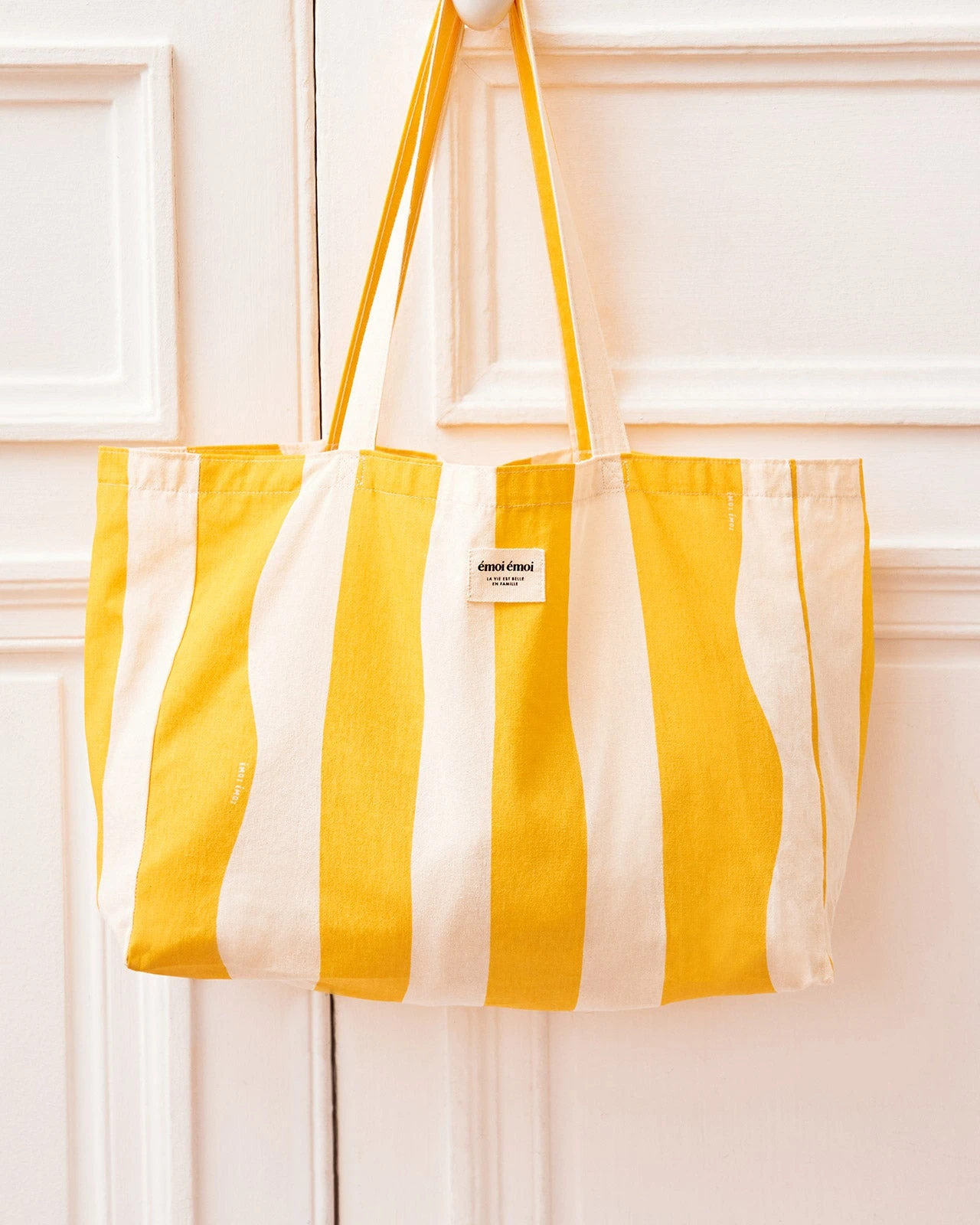 Le Tote Bag En Coton Bio Rayé – Jaune