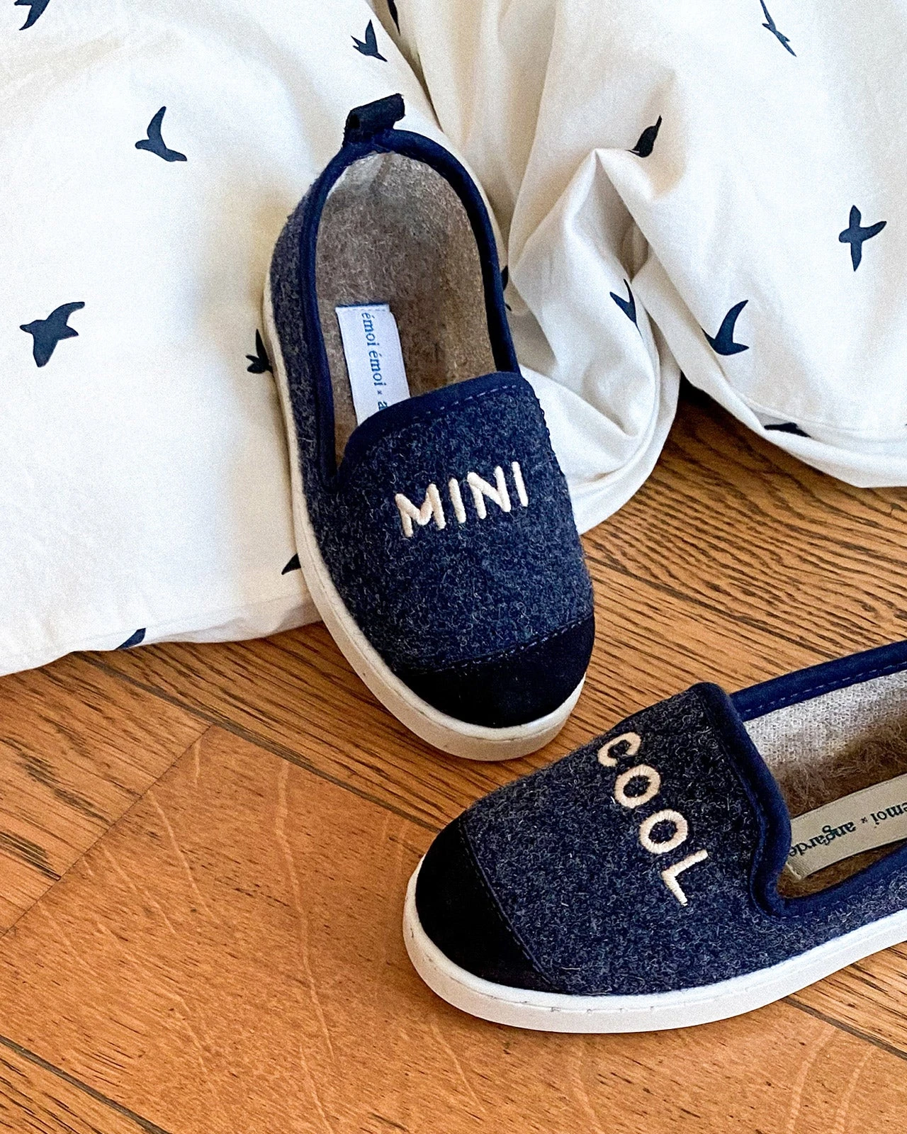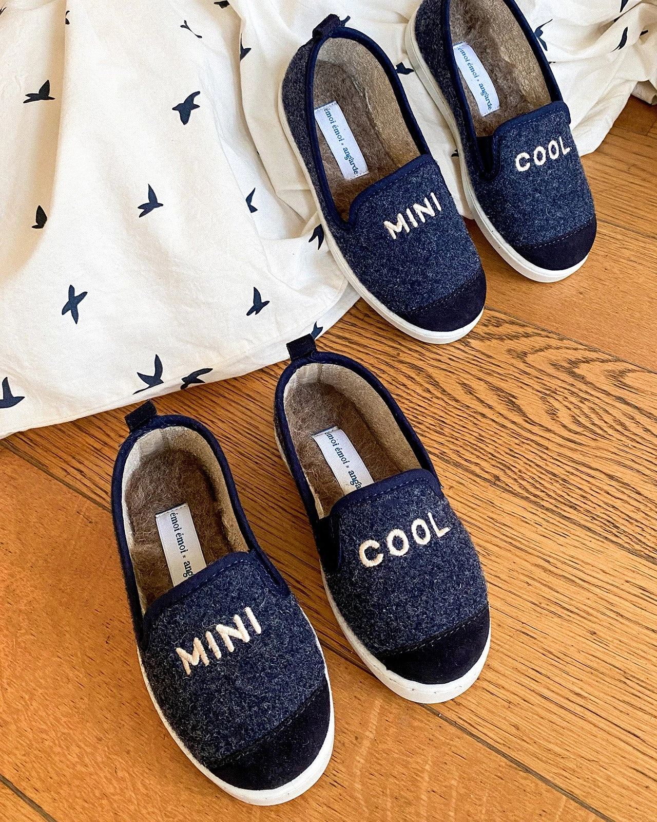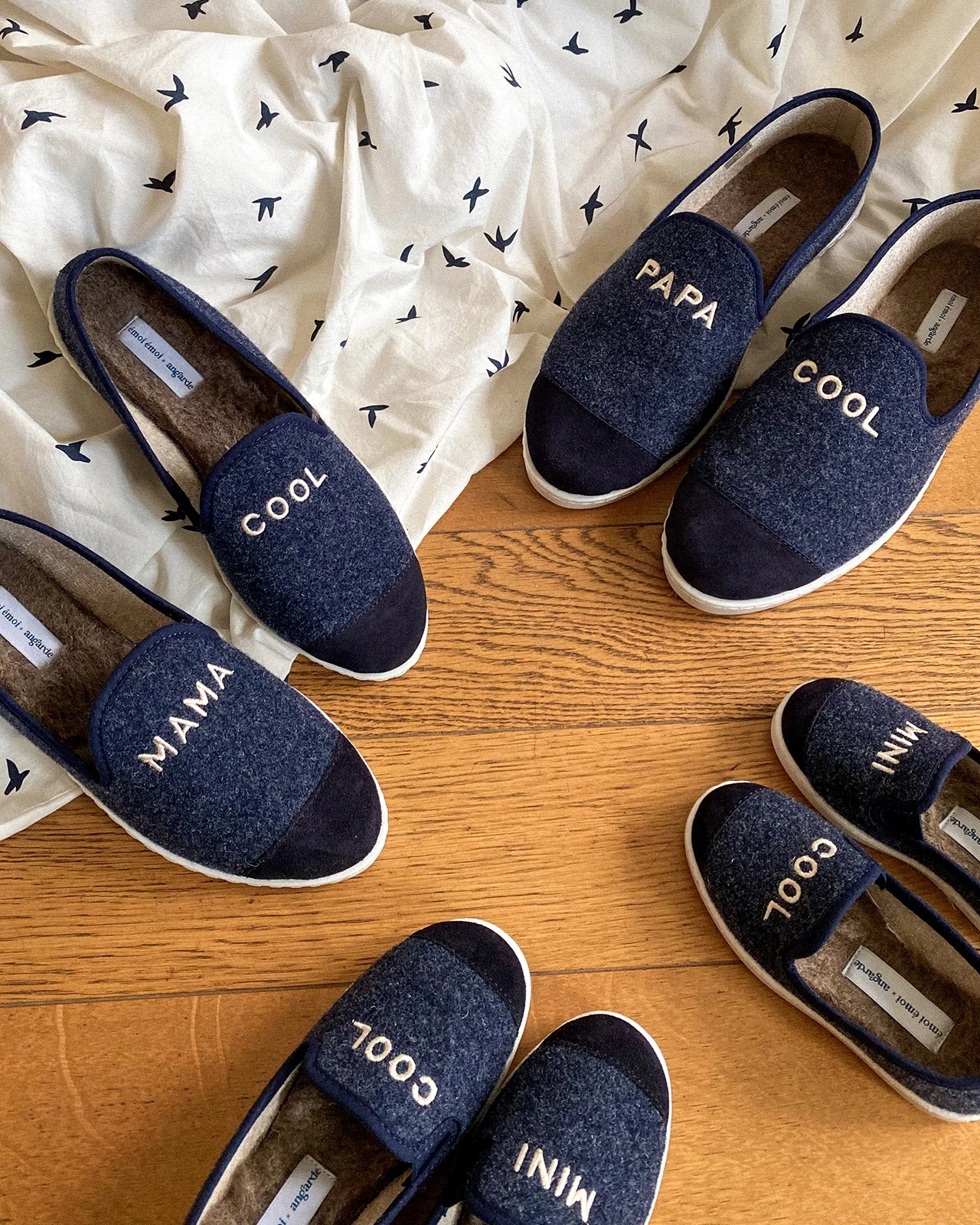 – À porter en famille : chaussons brodés « Cool » disponibles pour Mama, Mamie, Papa, Papy et Mini cool
