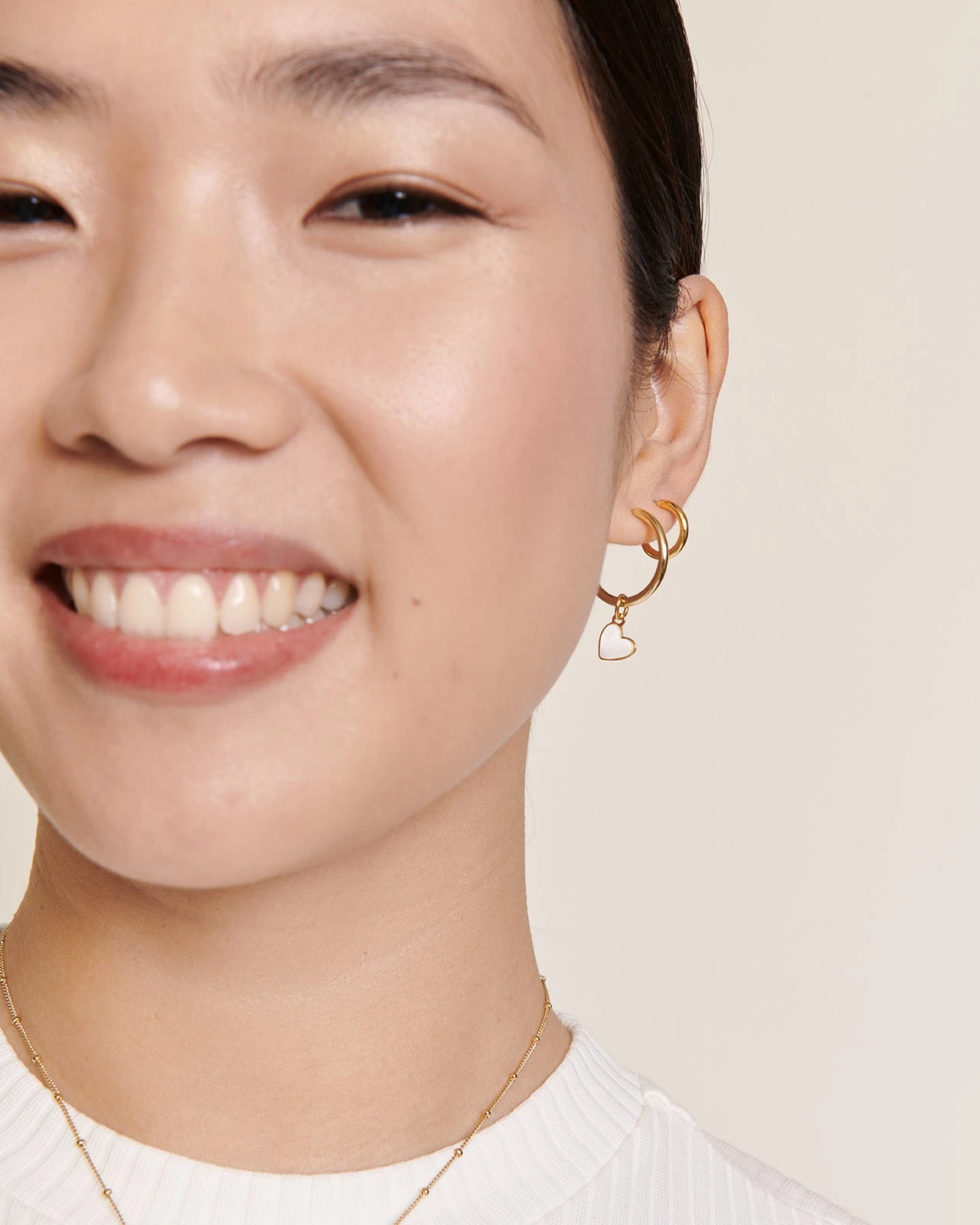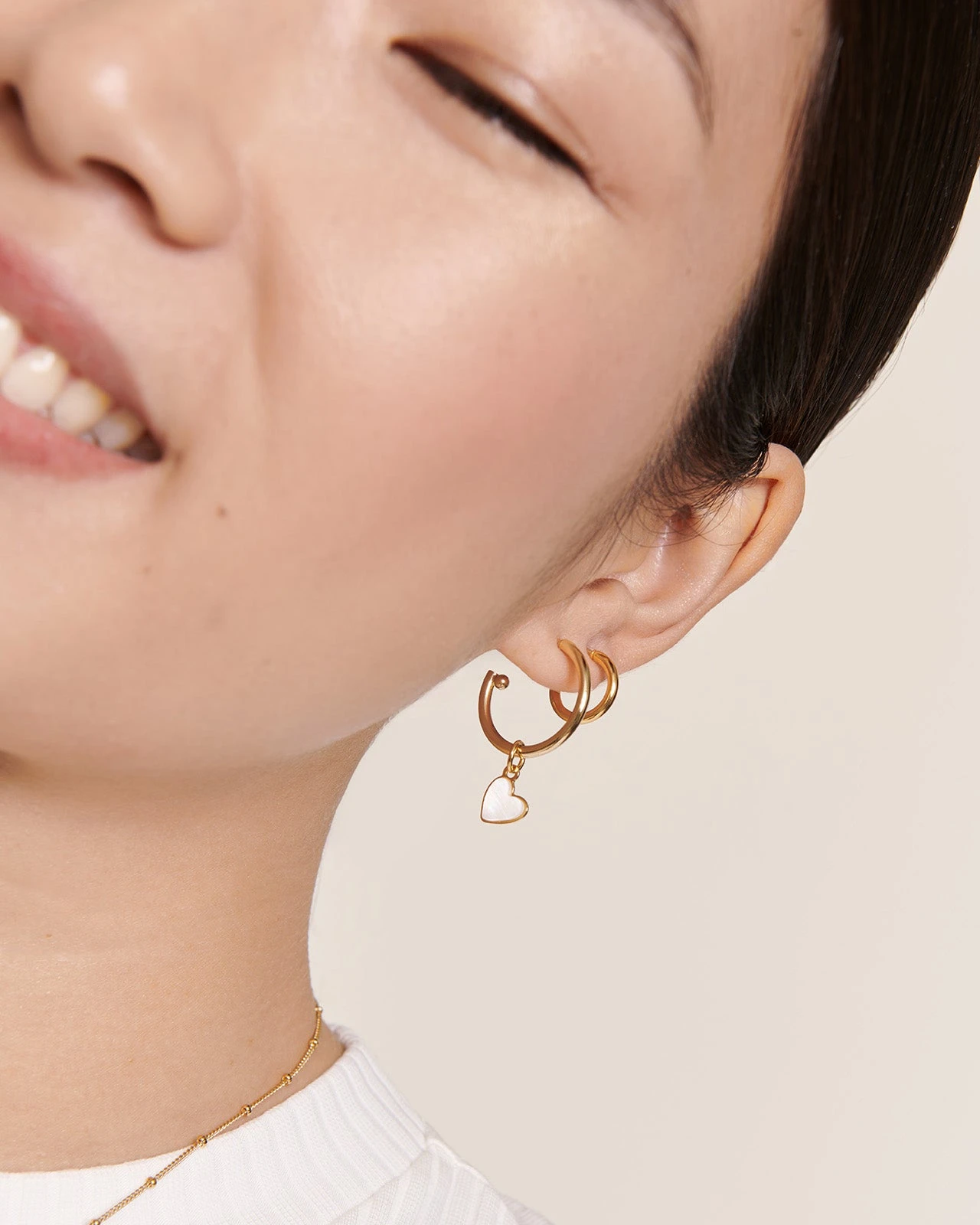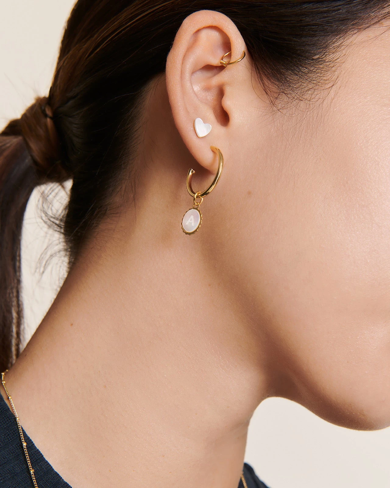 Nos créoles dorées ont ce petit truc en plus qui fait toute la différence : la boule graphique appliquée au bout de la tige. Parti pris autant stylistique que pratique : vous pourrez y glisser nos médailles coeurs, nos initiales etc. Chez émoi émoi, l’amour se porte comme un Charm.