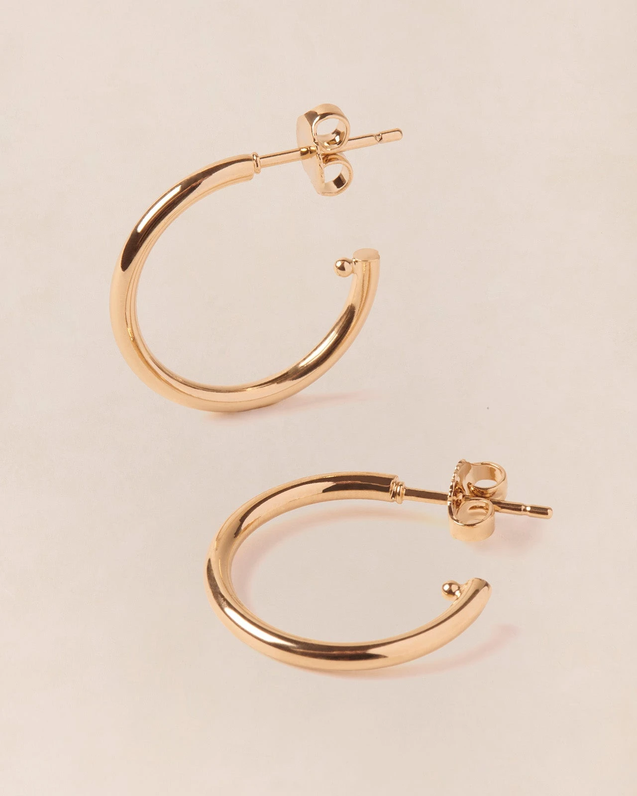 – Boucles d’oreilles créoles en laiton plongées dans un bain d’or 24 carats.