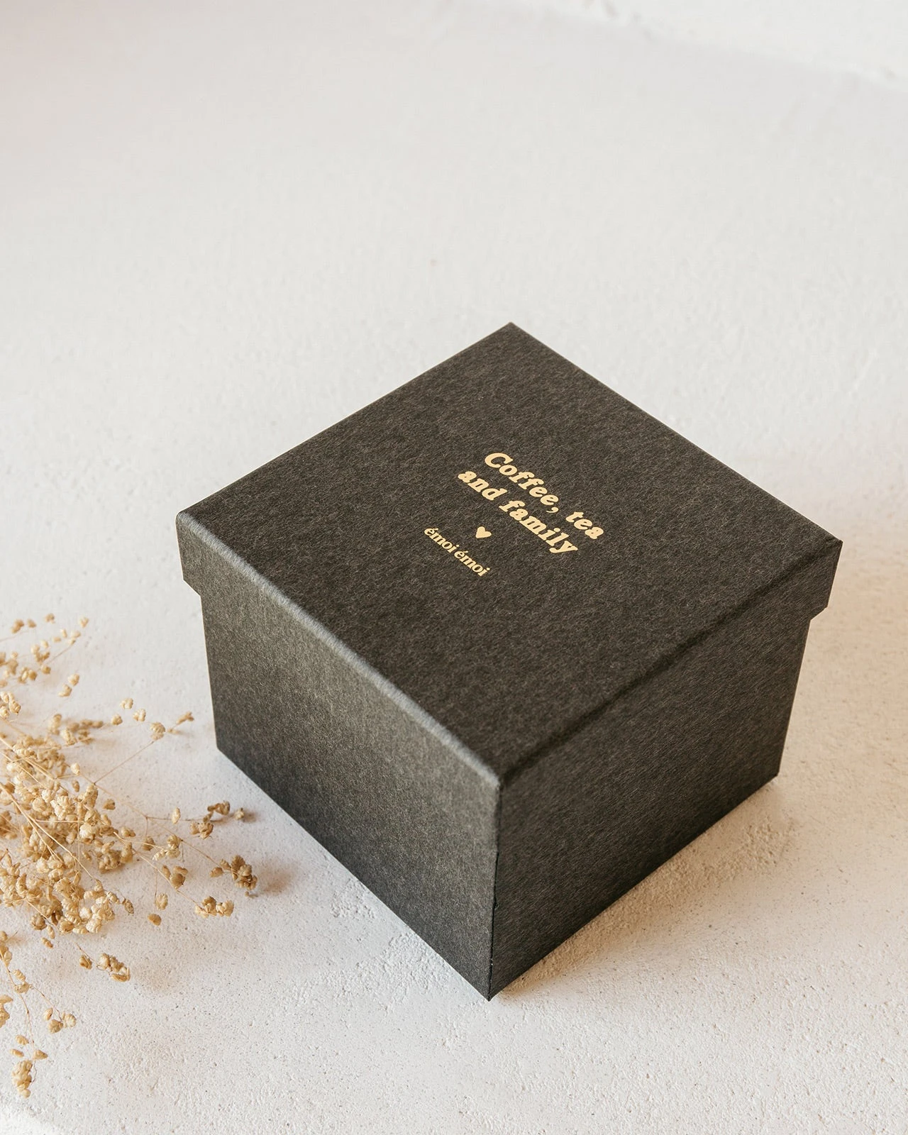 Livré dans une belle boîte « Coffee, Tea & Family » dorée à chaud, pour que le cadeau soit parfait.